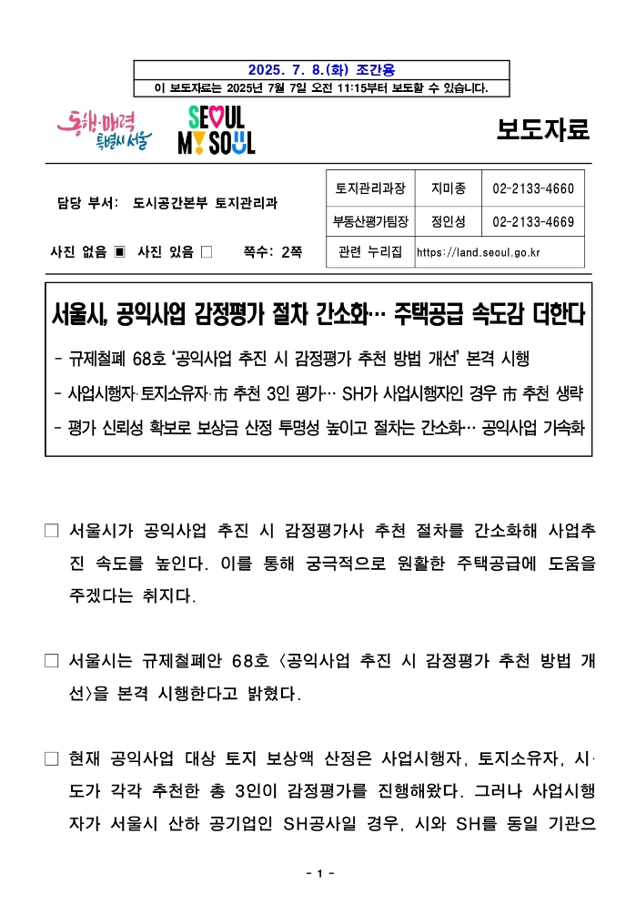 이러한 문제점을 해소하기 위해 '서울시 감정평가 간소화' 정책이 마련되었습니다.